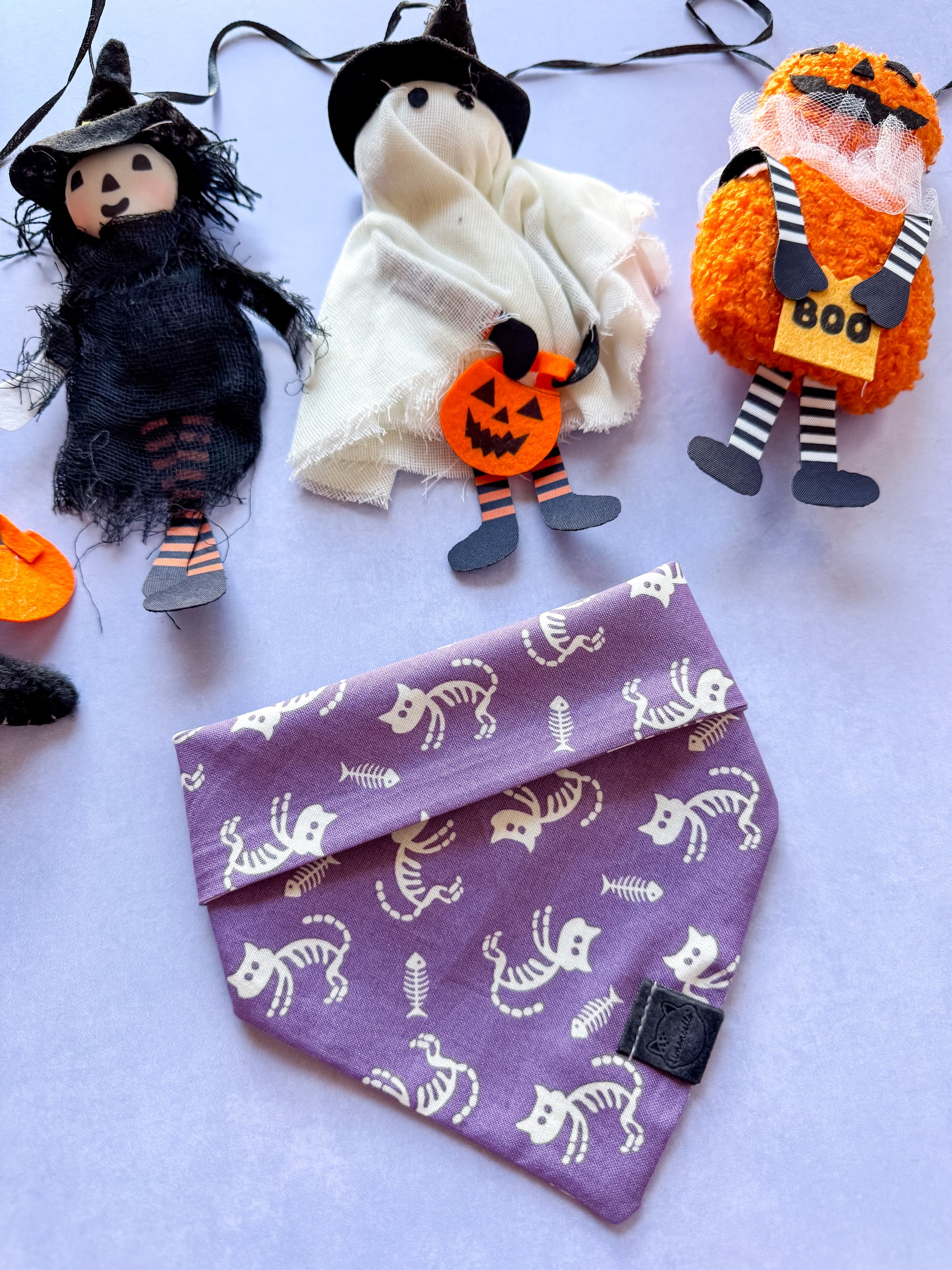 "Get your feline friend in the spooky spirit with our Haunted Cat Halloween bandana. Perfect for trick-or-treating or just a festive photo-op, this bandana will have your cat purring with delight. Don't wait, grab one now and give your cat the ultimate Halloween look! (Meow!) "